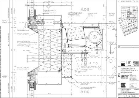 KOMM!, Offenbach Leitdetail: V-Schnitt Detail: Elementfassade, Anschluss an Boden und Decke