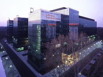 2001-2002 Neubau Bürogebäude und Parkhaus approx. 25.600 m² modulated facade approx. 1.870 m² stick construction approx. 7.000 m² aluminium lamellae facade multi-storey car park